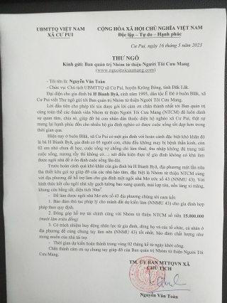 Thư Ngỏ của UBMT TQ VN xã Cư Pui