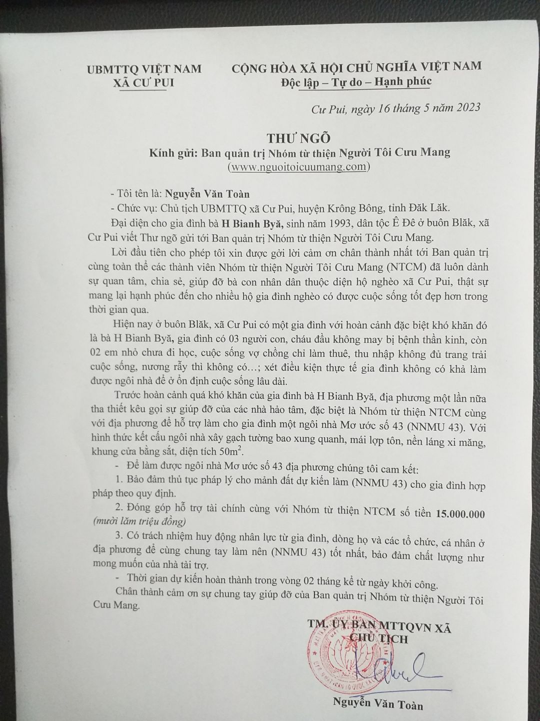 Mong mọi người góp sức thê, chúc chương trình thành công tốt đẹp và gia đình H Bianh bya sớm có nhà mới.