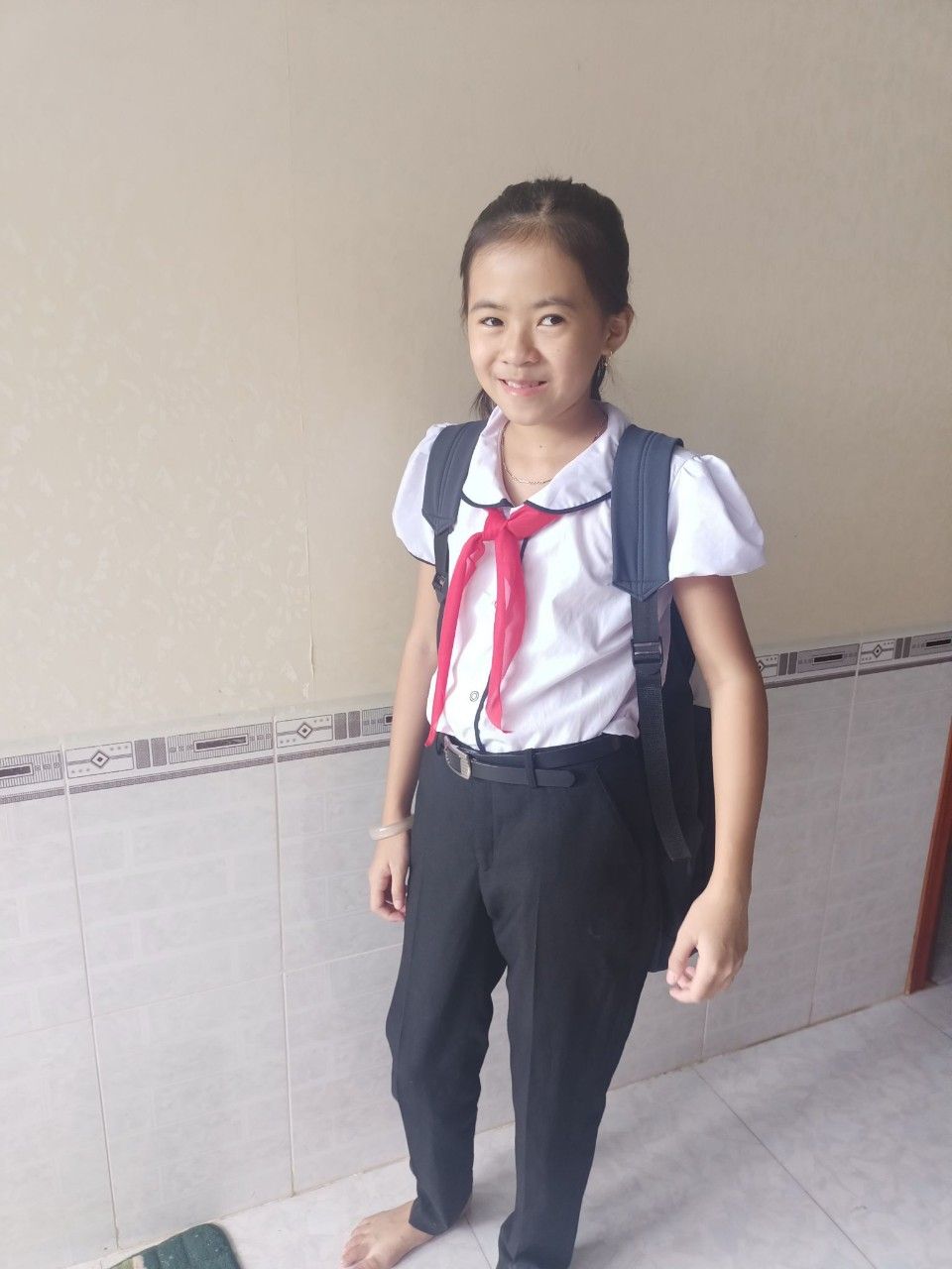 Hoàn cảnh gia đình: mẹ em mất năm 2022 vì ung thư vú, bố bị suy thận mất tháng 2 năm 2023, gia đình thuộc diện hộ nghèo. Tại thời điểm này, em mồ côi bố mẹ, là chị đầu của 2 em nhỏ lớp 4 và bé trai 3 tuổi. Hiện tại 2 chị em đang được cô ruột cưu mang,nuôi dưỡng. Em ngoan hiền, cố gắng vươn lên trong học tập.
