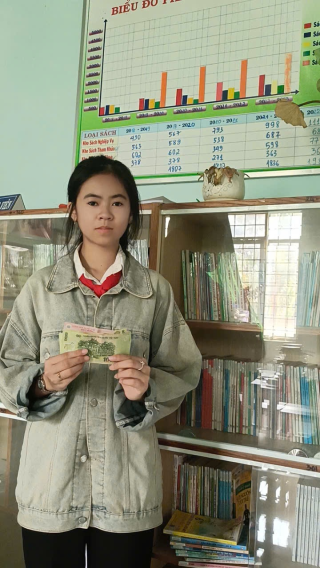 Trong ảnh là Cháu Hoà nhận tiền hỗ trợ 2 tháng ạh