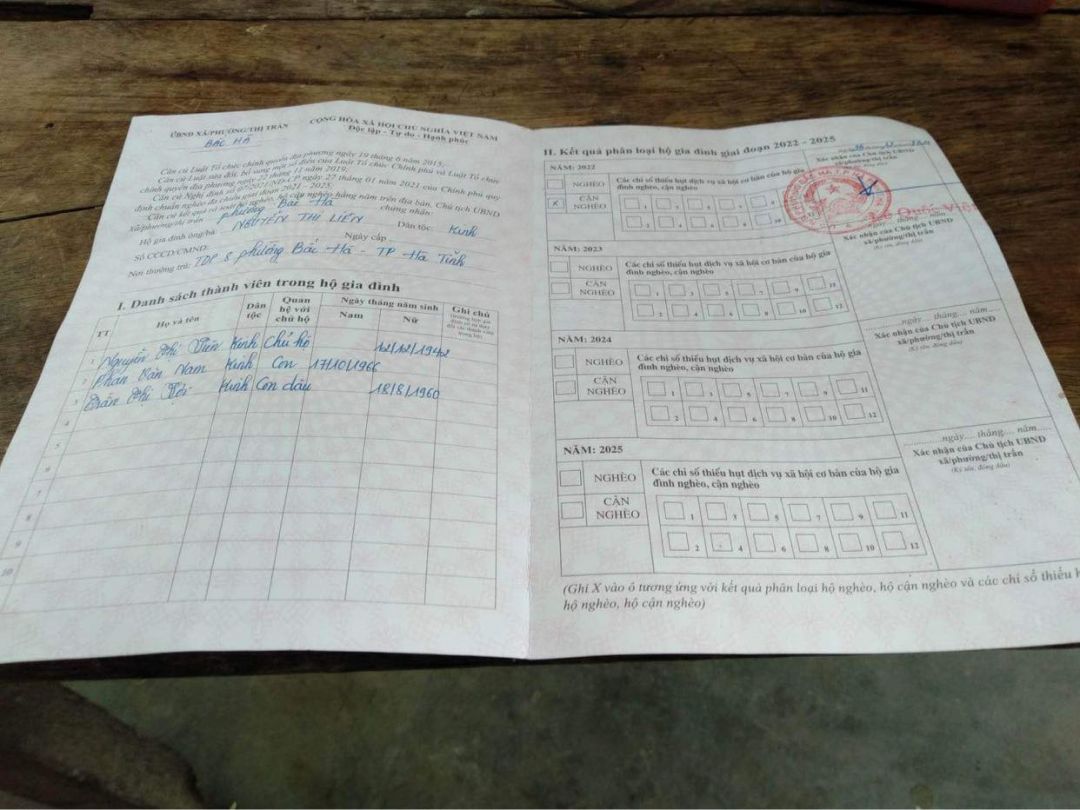 Vợ chồng bà Lợi có 2 cô con gái, 1 chị lấy chồng cùng tỉnh, sinh được 2 đứa con gái 1 cháu học lớp 2; 1 cháu vừa tròn 2 tuổi. Chồng làm nghề lái xe thuê, chị ở nhà giữ con nấu ăn cho chồng, tháng lương của chồng khéo co thì vừa đủ bữa ăn cho gia đình. Chị còn lại thì lấy chồng ngoài Bắc, cũng có 2 đứa con đang nhỏ; chồng cũng hành nghề lái xe, chị ở nhà giữ con. Không làm kinh tế được.