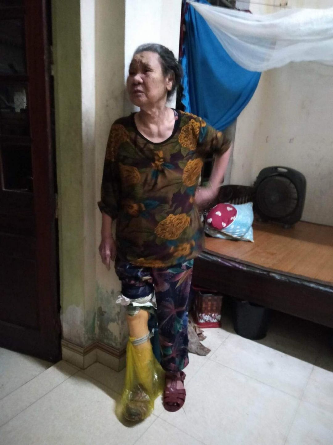 Gọi là gia đình bệnh tật, không sai. Bà mẹ chồng bị mất một chân. Chồng bà bị bệnh á sừng mãn tính, nay cũng trải qua 20 năm sống chung với căn bệnh quái ác. Bây giờ đến lượt bà, bà phát bệnh u nảo rồi đi phẩu thuật luôn tại BV Việt Đức - Hà Nội hồi tháng 4. Chi phí khá đắt đỏ, ăn uống nằm viện nữa; nợ chồng thêm nợ. Giữa thành phố náo nhiệt, nhưng trong ngõ nhỏ có 1 gia đình như vậy. Chống chọi với bệnh tật, xin từng bữa ăn. Không biết nhìn đâu để có điểm tựa, anh chị em giúp nhau cũng bữa trước bữa sau là thưa dần.
