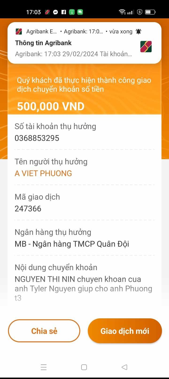 Xin cảm ơn Anh Tyler Nguyen đã hỗ trợ giúp đỡ cho em tiền tháng 3/500k. Em gái Nin đã chuyển sang tiền và E A Viết Phương đã nhận được tiền rồi ạ.