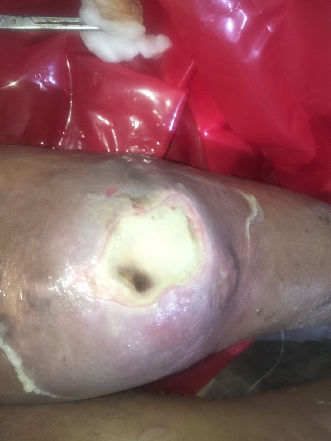 Đây là hình ảnh của em A Viết Phương hiện tại đang bị hoại tử ngay đầu gối và ban chân ạ