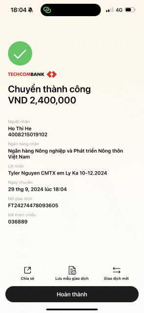 Tyler Nguyen tiếp tục giúp đỡ cháu. Qua trao đổi với chị Hè về hoàn cảnh hiện tại, cũng như điều kiện các Mạnh Thường Quân trong năm 2025, mức CMTX có điều chỉnh từ 800k năm 2024 xuống 400k/tháng năm 2025.