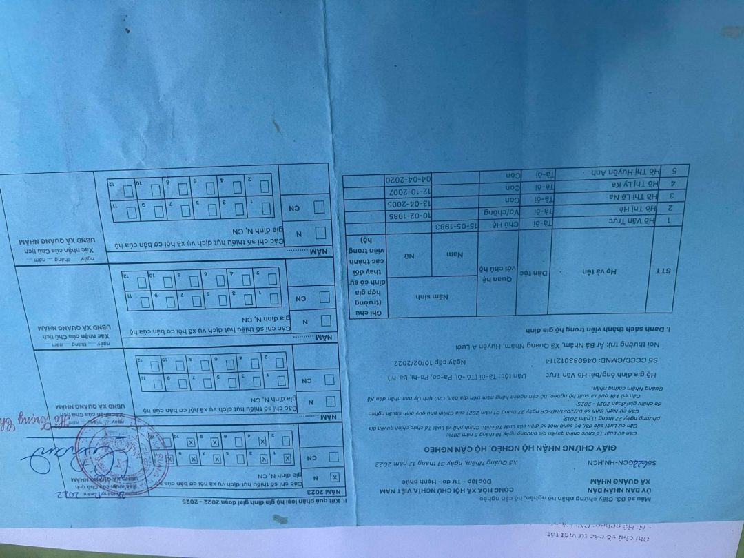 Em xin cập nhật xác minh mới về hoàn em là Hồ Thị Hè sinh năm 1985, thu nhập của em một tháng 3 triệu 2 trăm nghìn đồng, chức vụ của em là làm trưởng thôn của thôn âr bả Nhâm, em bị bệnh viêm gan, đại tràng, dạ dày, gai cột sống thắt lưng l4, l5, 1 tháng em về khám 1 lần, chi phí về khám, cả tiền thuốc 1 tháng hơn 2 triệu đồng. Chồng em Hè là Hồ Văn Trực sinh năm 1983. Anh không có công việc ổn định, hay bị đau ốm. Có dấu hiệu tâm thần nhẹ là do gia đình thấy anh khi nhớ khi quên do ảnh hưởng từ vụ tai nạn xe máy từ năm 2022. Và không có giấy tờ xác nhận ạ vì tình trạng như trên ạ.
