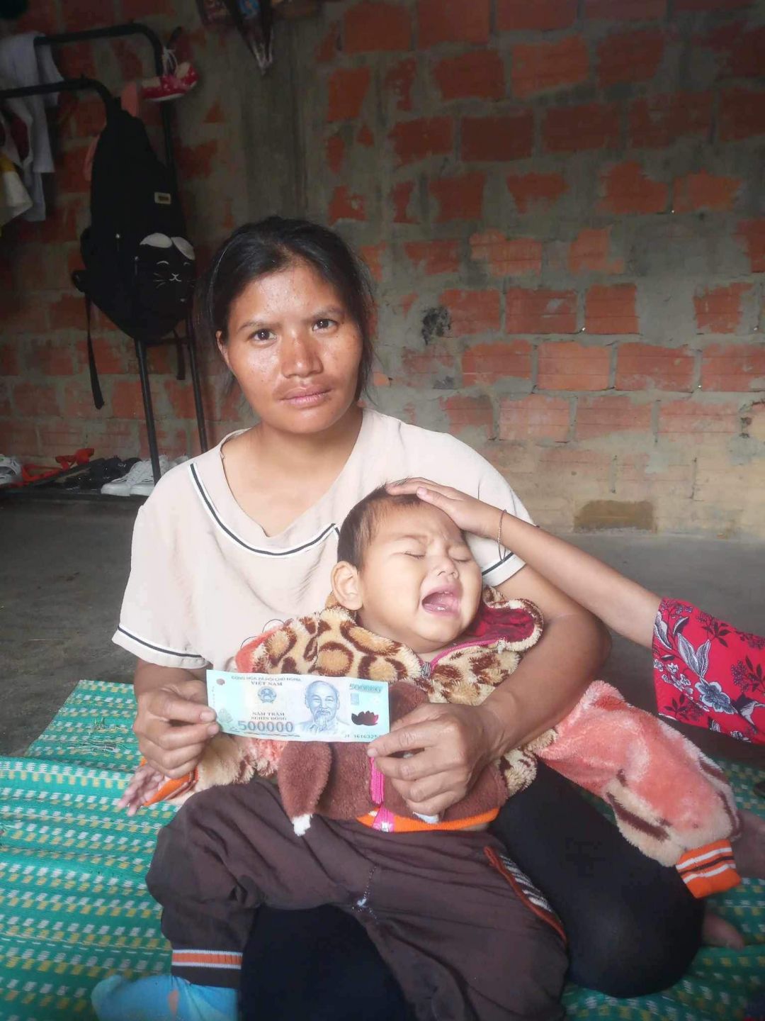Hiện khoản vay ở ngân hàng chính sách cũ là 50 triệu, gia đình mới vay thêm 20 triệu và mỗi tháng trả lãi 500.000-600.000 đồng. Mẹ cháu ở nhà chăm cháu, bố phụ thợ nề mùa mưa việc không ổn định thu nhập ngày có ngày không, hoàn cảnh quá khổ ạ, đặc biệt là cháu ăn uống hàng ngày không có chất dinh dưỡng.