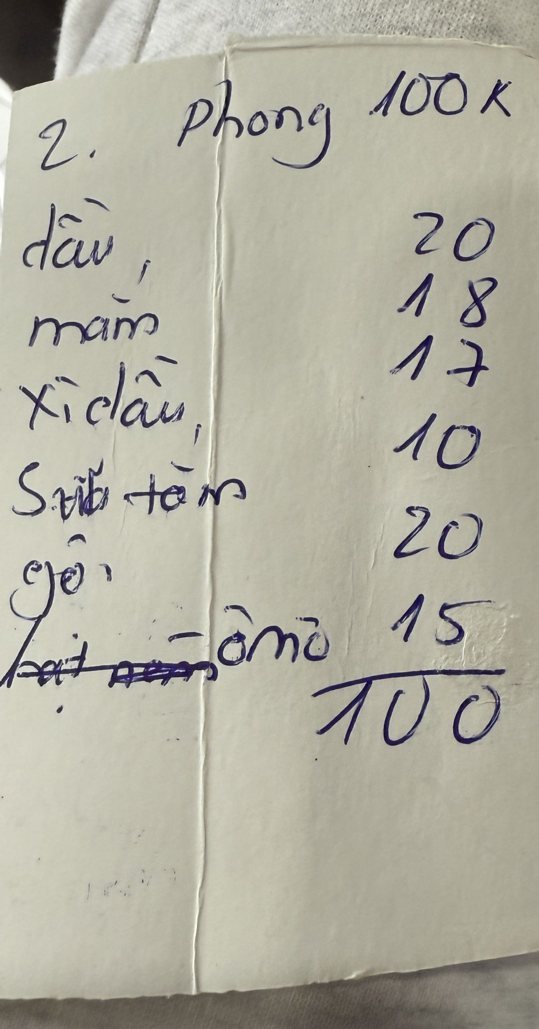 và 100.000 đ tiền mặt