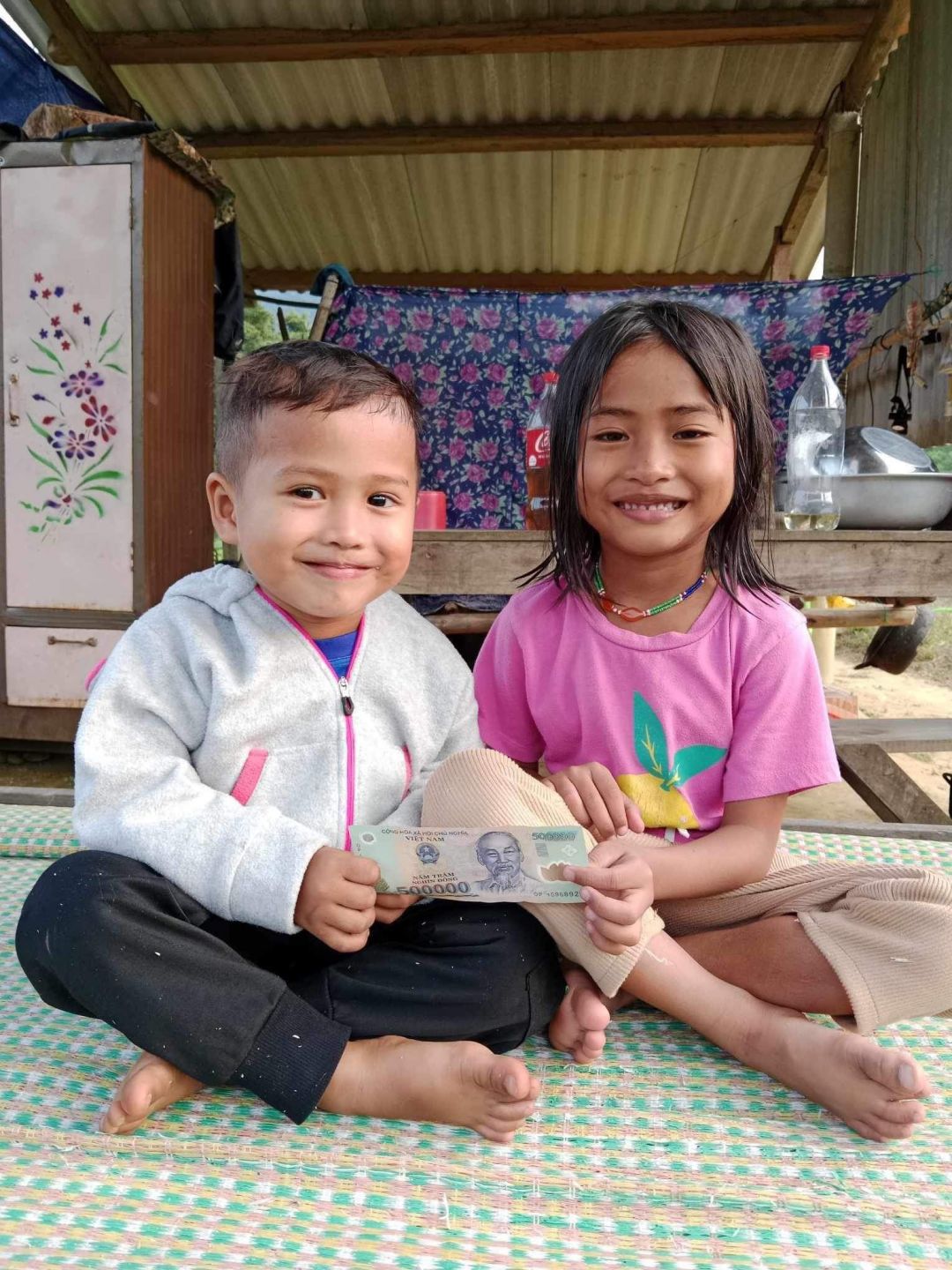 Em đã trao số tiền 200.000 đ mừng trung thu cho 2 con của em Hồ Thị Đăng.