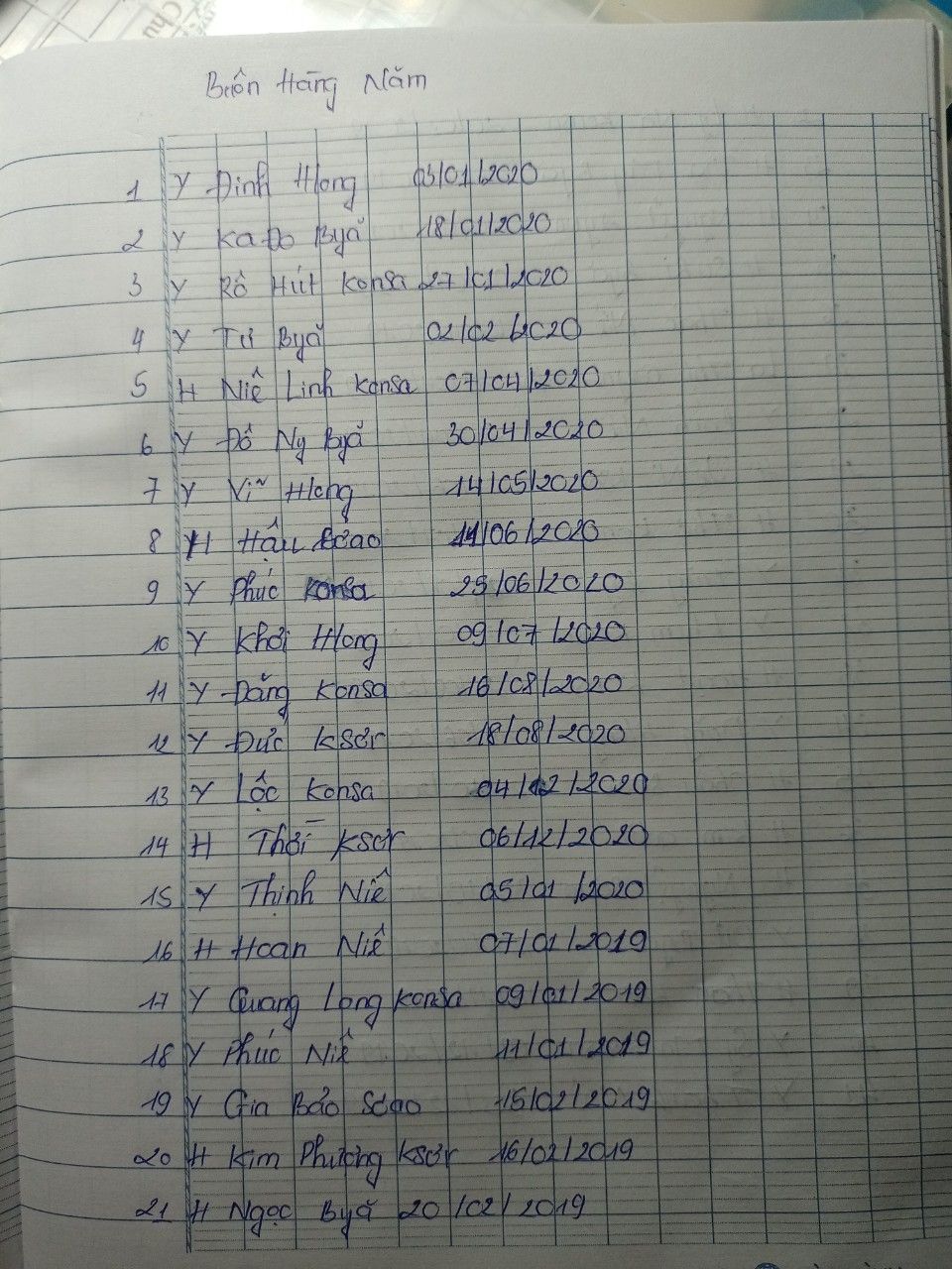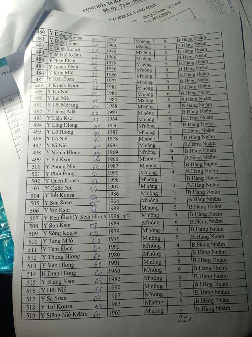 Danh sách hộ nghèo, cận nghèo buôn Hàng Năm: