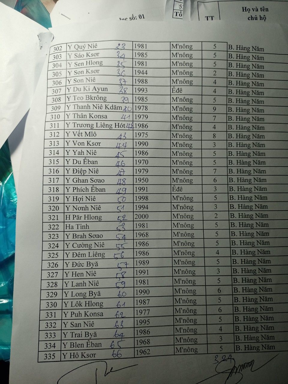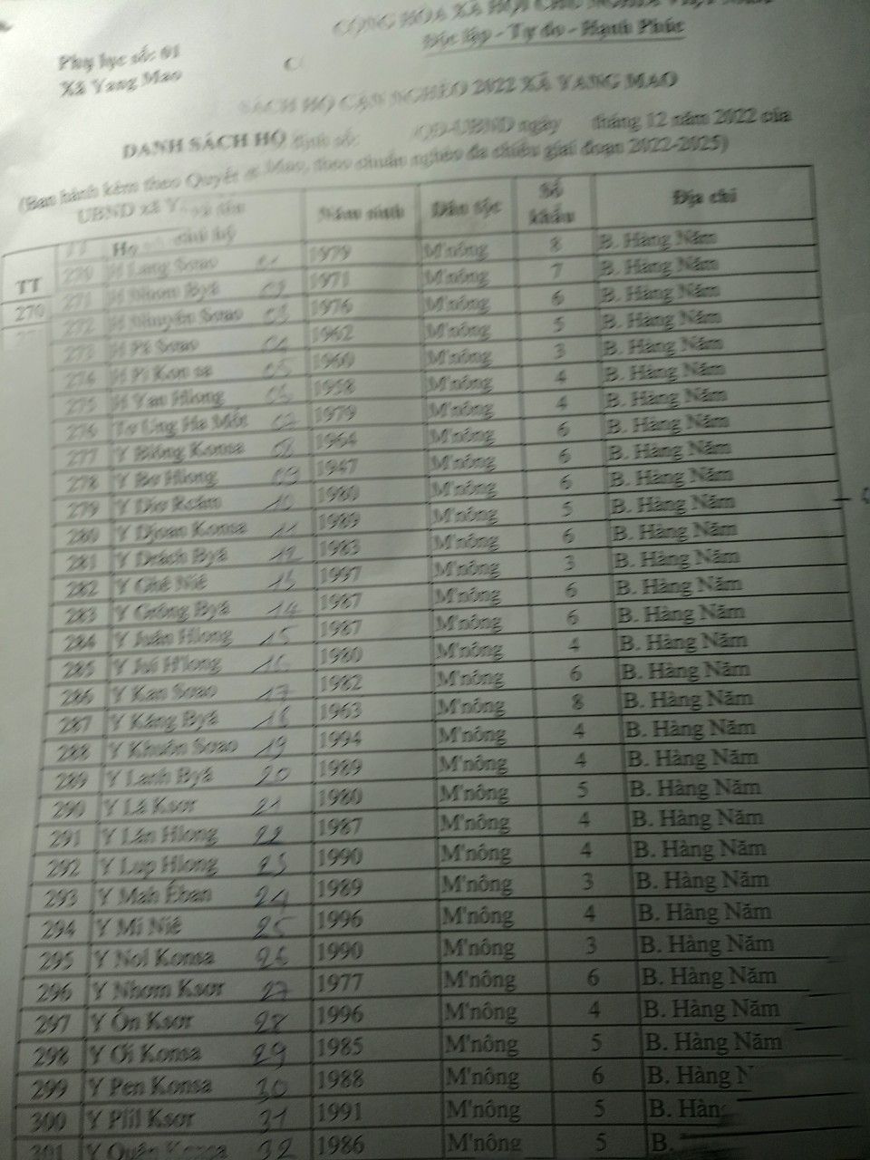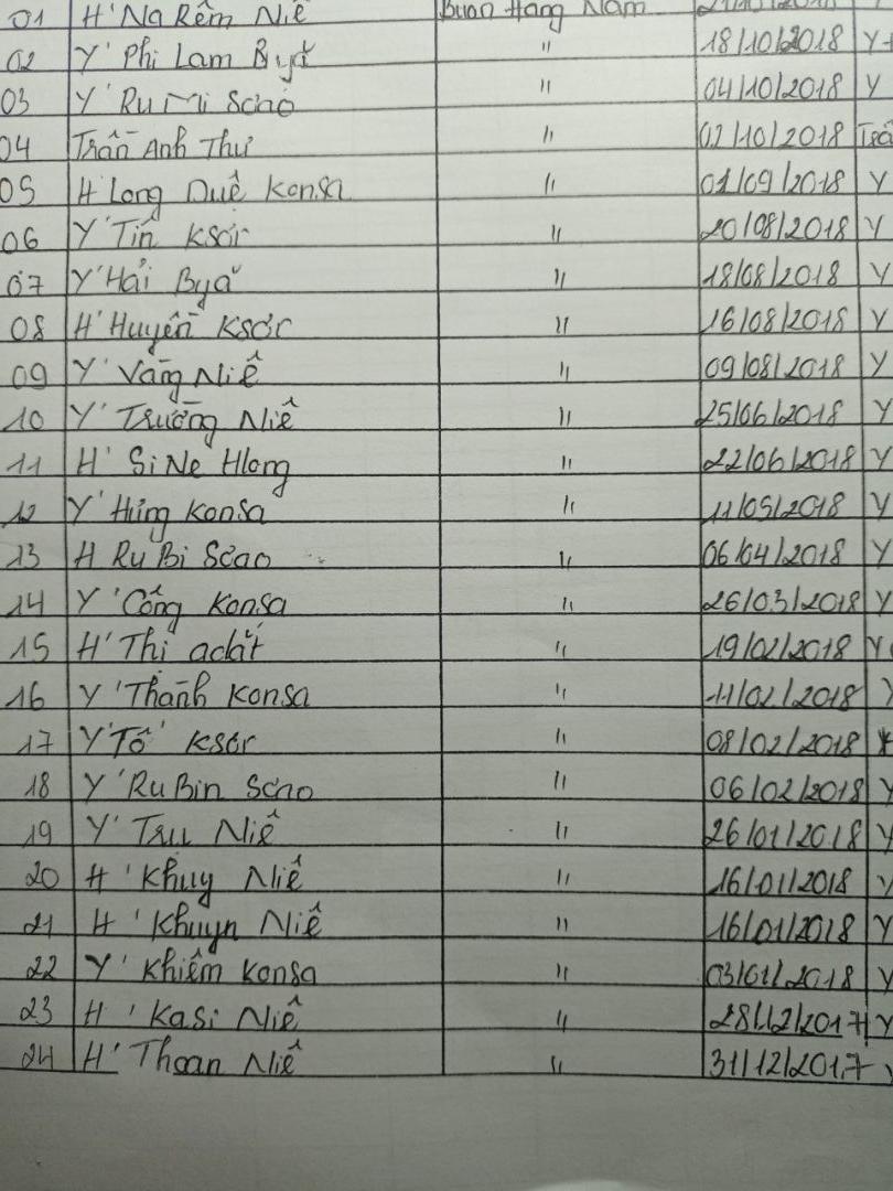 Danh sách hộ nghèo, cận nghèo buôn Hàng Năm: