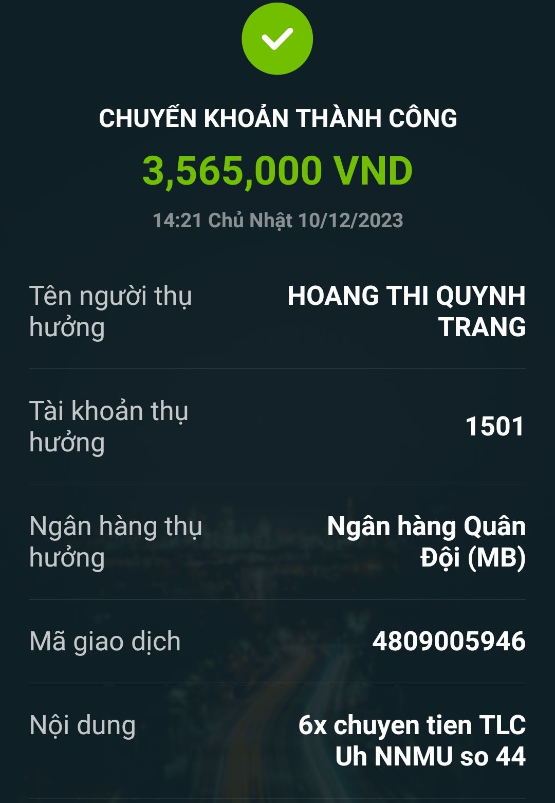 Gia đình TLC ủng hộ NNMU số 44 số tiền 3,565,000₫ ( 200 CAD tỷ giá 10/12/2023 ) các bạn nhé.