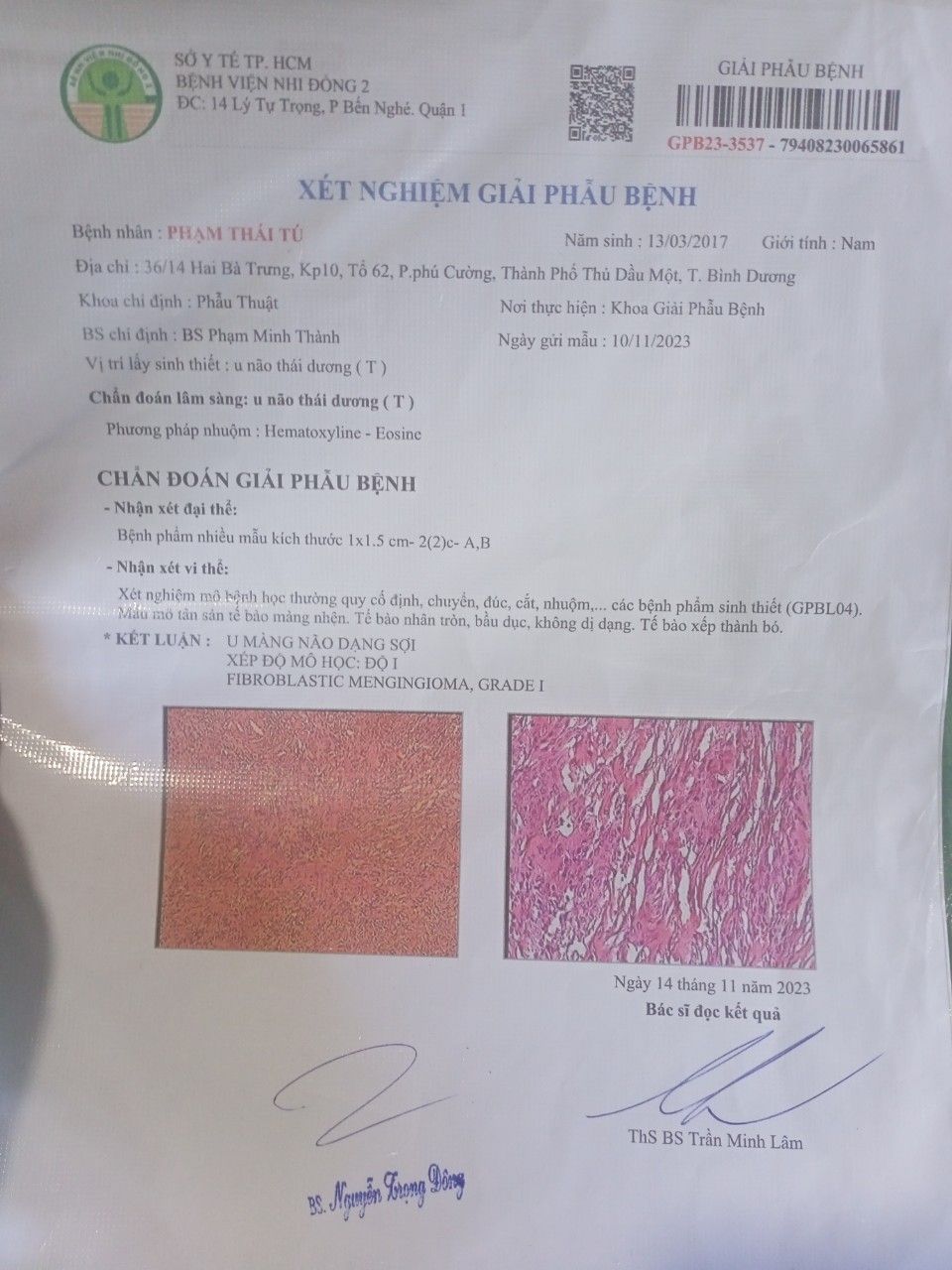 Mình muốn giới thiệu một trường hợp cần xác minh để có hướng giúp đỡ tốt hơn. Bé là Phạm Thái Tú, học cùng lớp 1 với con mình, nhưng từ khai giảng tới giờ vẫn chưa tới lớp được vì phải điều trị u não lành tính, vừa mổ xong lần 3. Theo lời cô giáo thì cha bé làm thợ sơn, mẹ làm giúp việc, công việc không ổn định nhưng vẫn phải nuôi 3 anh em cũng đang học lớp 4 và 5 tại cùng trường Huỳnh Văn Chính.