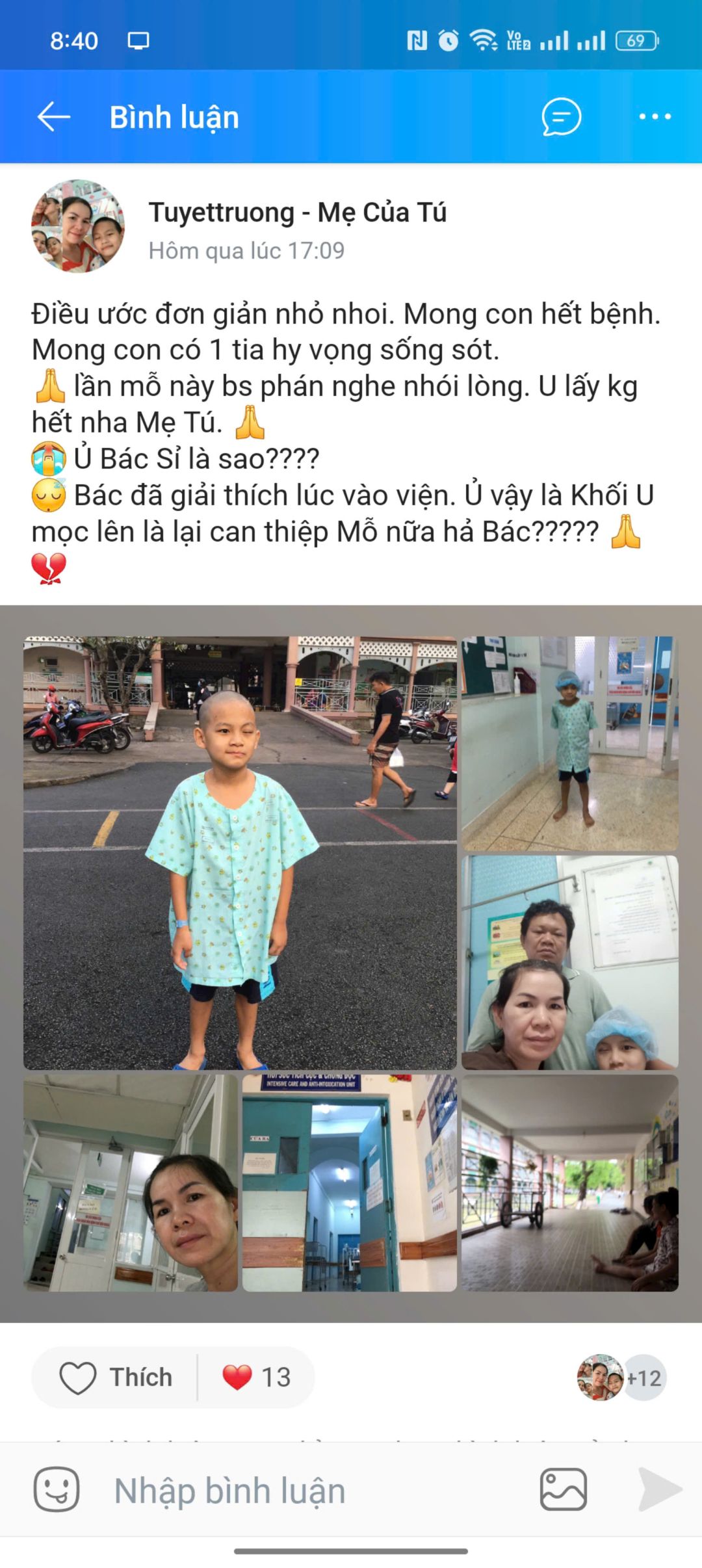 Xin cảm ơn sự chung tay của cả nhà và cầu mong bé Tú sớm bình phục.