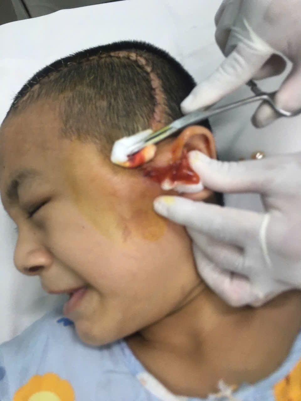 Hiện tại, bé Tú vẫn đang nằm theo dõi vết mổ, 1 vết đã lành, còn 1 vết chỗ mang tai vẫn còn ứ dịch, trong 1-2 ngày tới, nếu không hết dịch thì phải phẫu thuật hút dịch ra.
