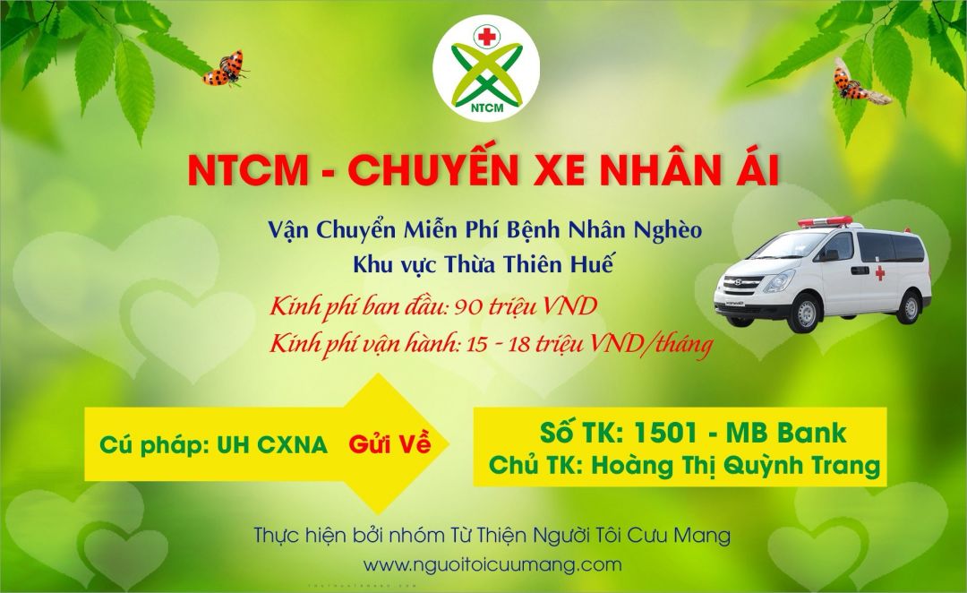 Về tên chương trình ban đầu Xe Cưu Mang không thể hiện được hết bản chất của chương trình (có thể các bạn chuyển từ Xe Cấp Cứu sang Xe Cưu Mang cho tiện), nên ThaiDzuy có trao đổi lại với Phuc Le Huu và chọn tên dự án NTCM - Chuyến Xe Nhân Ái.