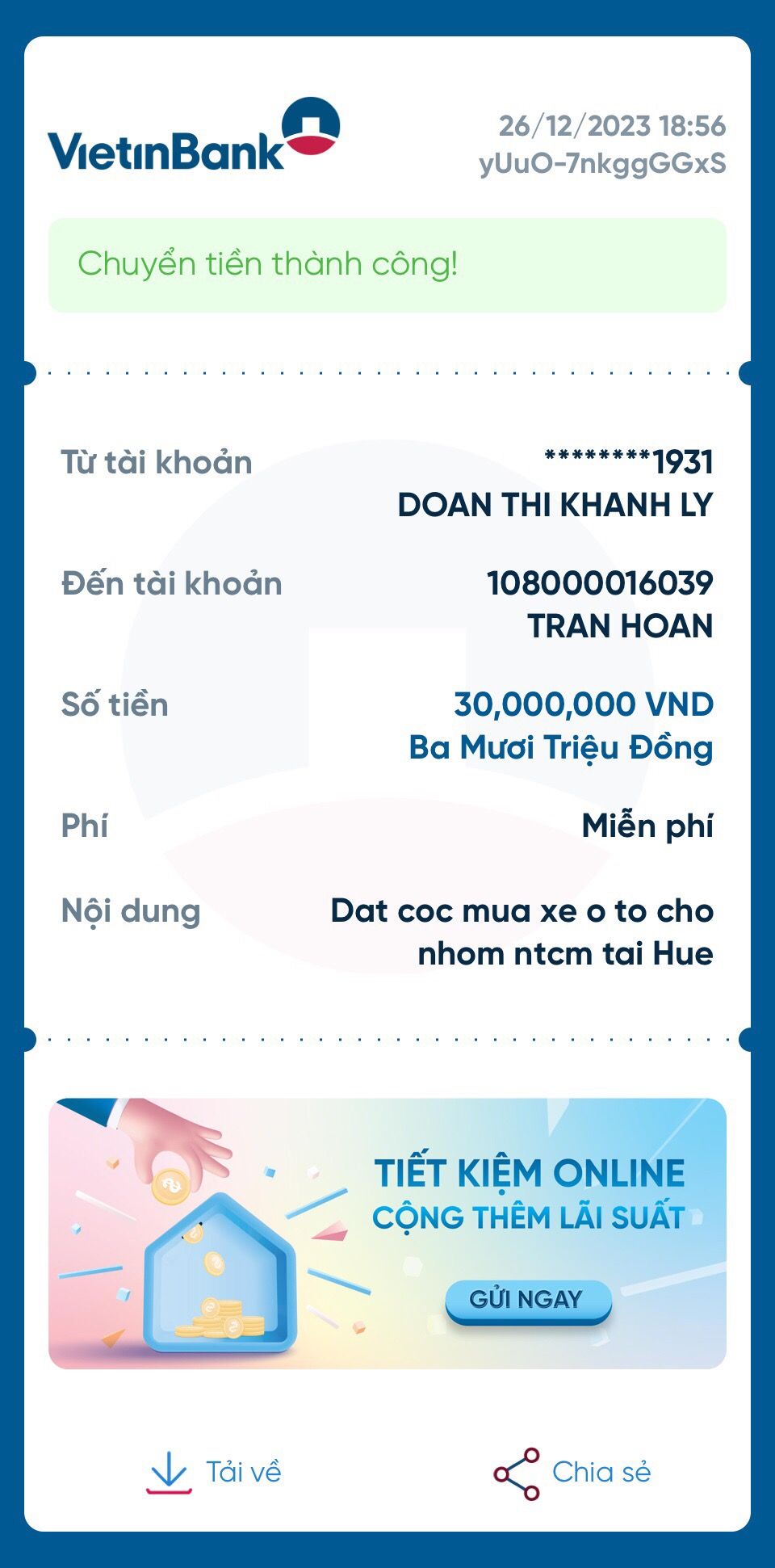✔️Khánh Ly đã nhận được 80.000.000đ từ nhóm và chuyển cọc bên bán xe 30.000.000đ