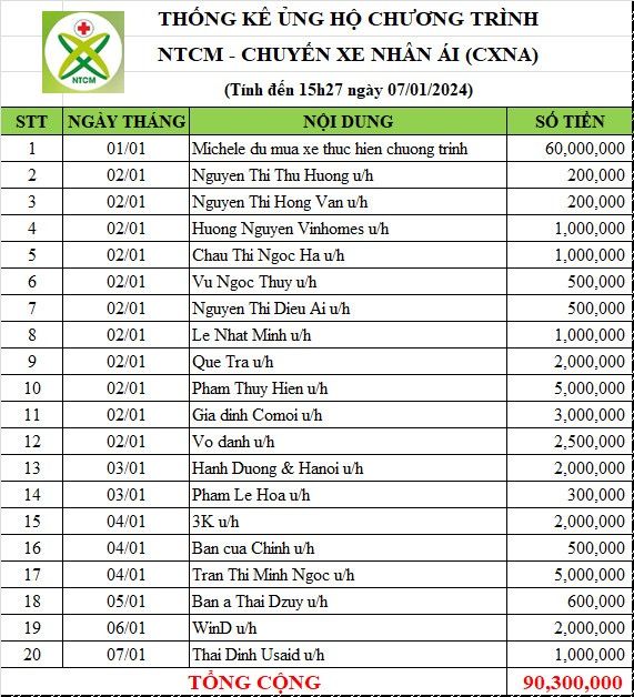 Xin được vui mừng cập nhật các khoản ủng hộ hiện kim tới ngày hôm nay ạ!