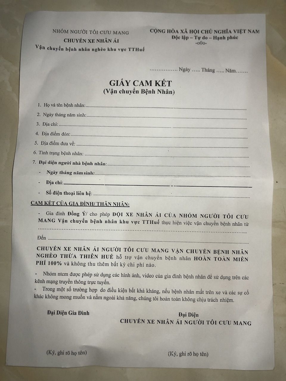 Nhờ cả nhà xem qua giấy cam kết nhóm đã soạn khi tiếp nhận bệnh.