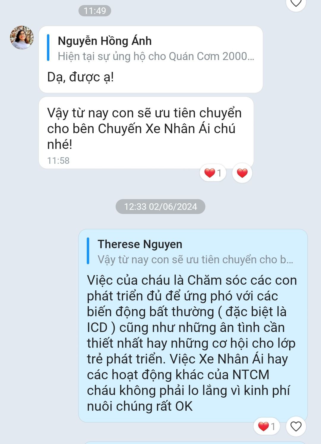 Có 2 khoản ủng hộ từ bác @kim bang cho chương trình cứu trợ Lạng Sơn đã chuyển nhầm vào tài khoản của Xe Nhân Ái, nhờ chị @Khánh Ly chuyển về quỹ NTCM để tiện theo dõi thu - chi nhé.