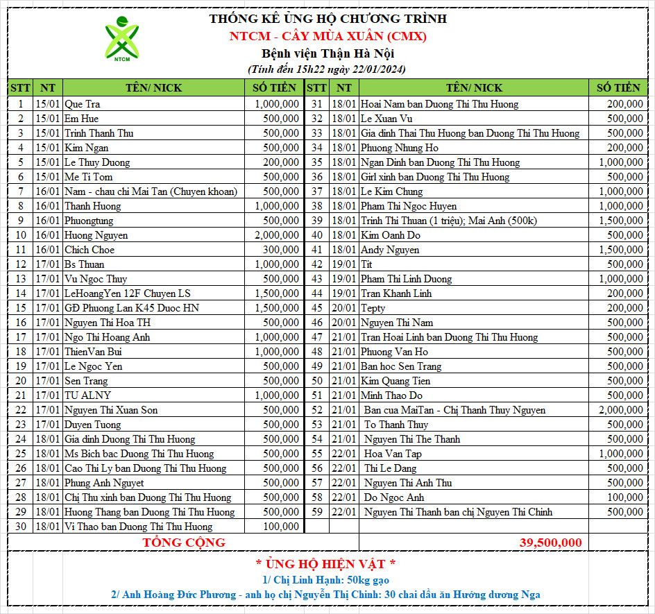 Chương trình Cây mùa xuân viện Thận Hà Nội -Xuân Giáp Thìn đã hoàn thành việc kêu gọi và mua sắm cho Chương trình.