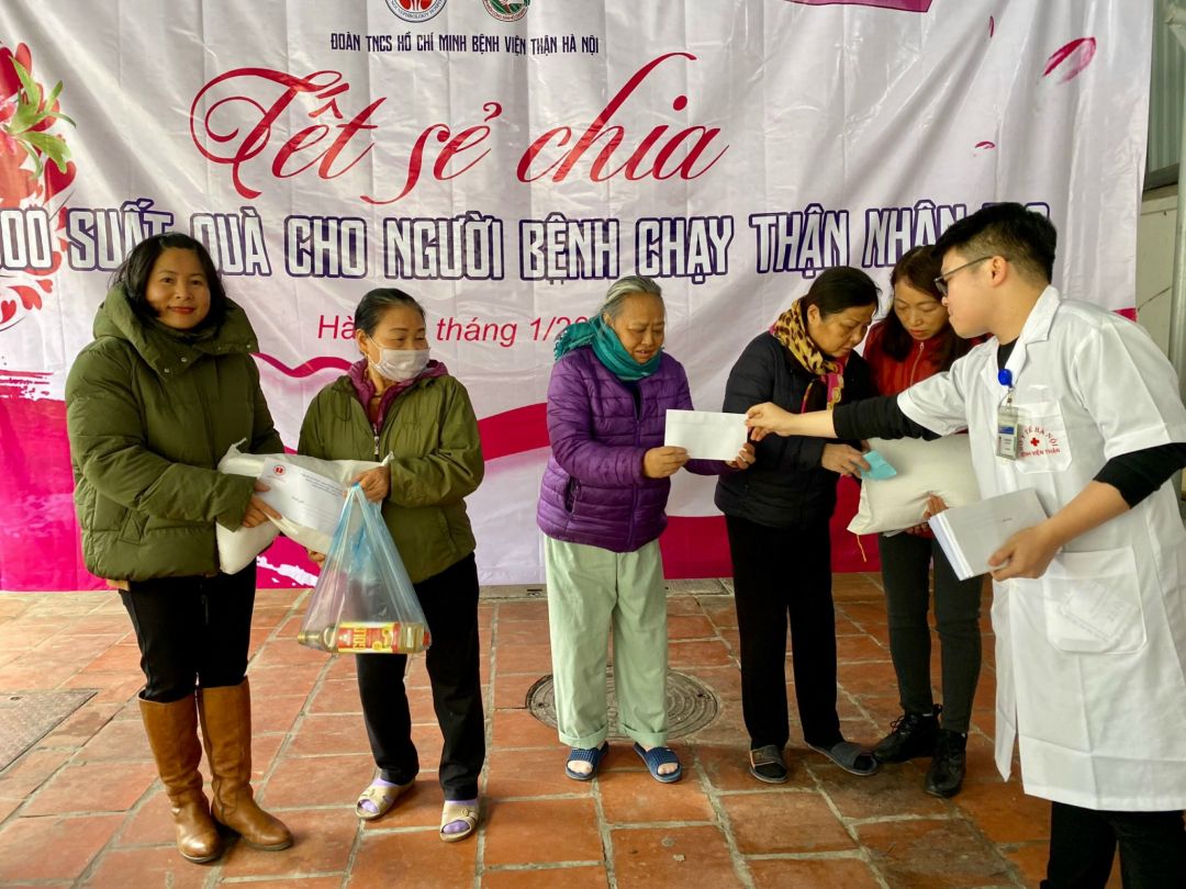 200 suất quà tết đã được trao tận tay các bệnh nhân có hoàn cảnh khó khăn tại bệnh viện Thận Hà Nội.