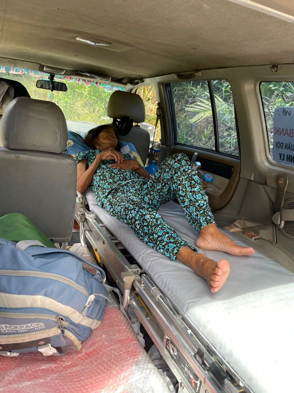 Bệnh nền, tắc ruột, cấp cứu ở viện ĐH Y Huế. Không người thân theo cùng, yêu cầu xe từ BS viện 41 xin đưa bà về; được xuất viện nhưng không tự ngồi được.