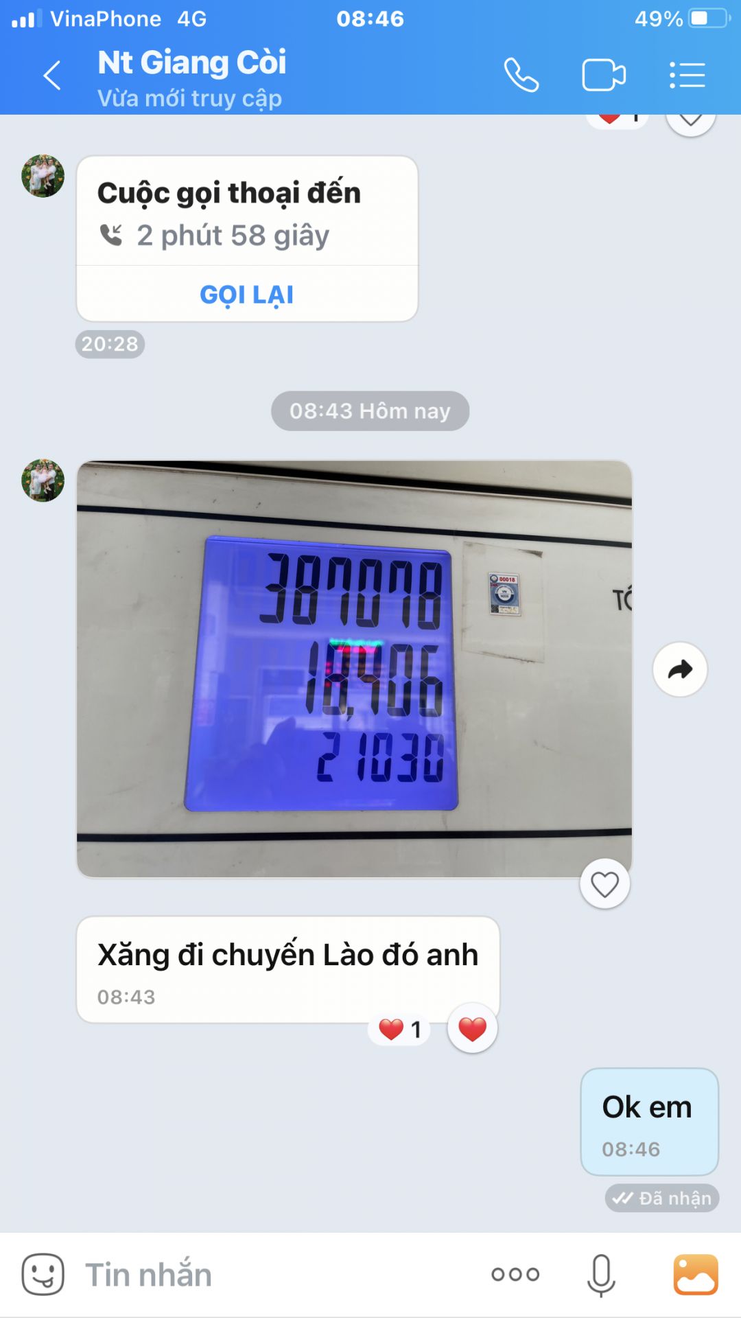 Dầu đổ trước chuyến đi (đây là dầu chuyến 1724): 387.078đ