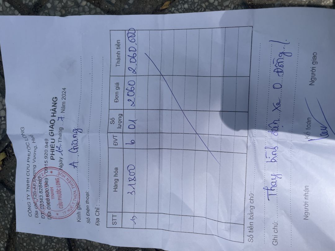 1. Sáng nay kiểm tra thì bình điện không đảm bảo, không giữ điện tụt bình liên tụt dẫn điện thoại cho đại lý dưa thợ đến thay hết 2060.000 đ