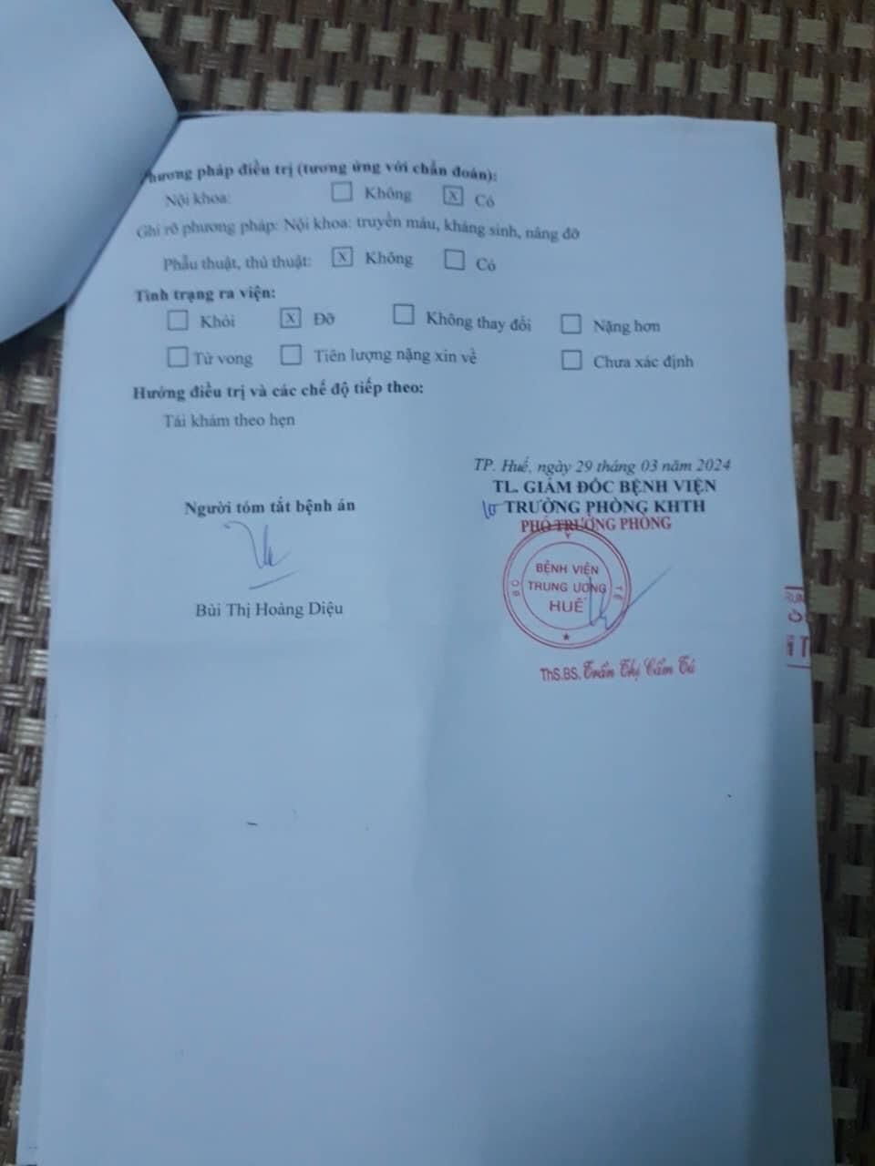 Chỉ có người con gái đi theo chăm mẹ nên cũng khá rối rắm mới xong mọi thứ. 12h xe mới lăn bánh rời viện Huế.
