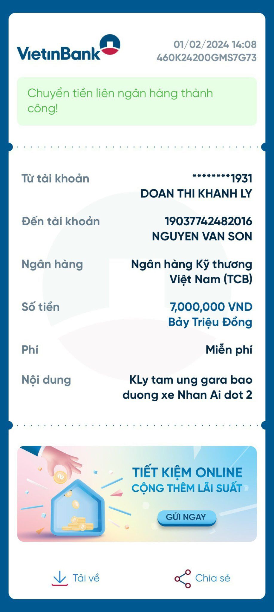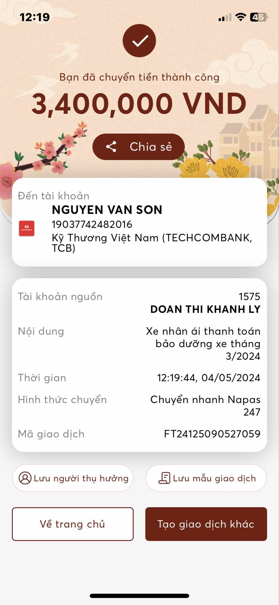 Gianglaf người chịu trách nhiệm thời gian đó về bảo dưỡng vận hành, bạn cập Nhật báo cáo cho mọi người để thủ quỹ thanh toán.
