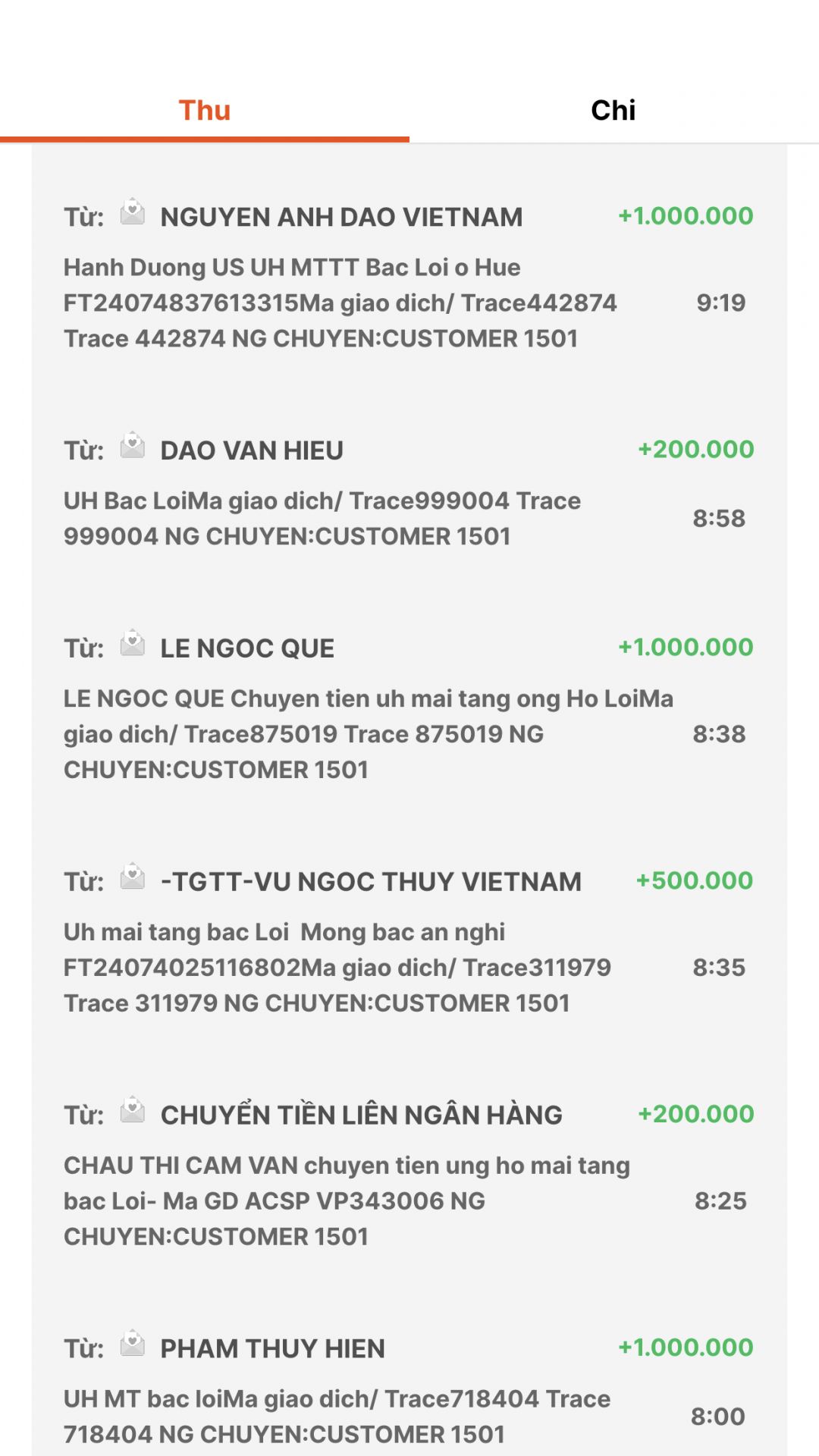 Quỹ đã thực hiện chuyển đến Khánh Ly.