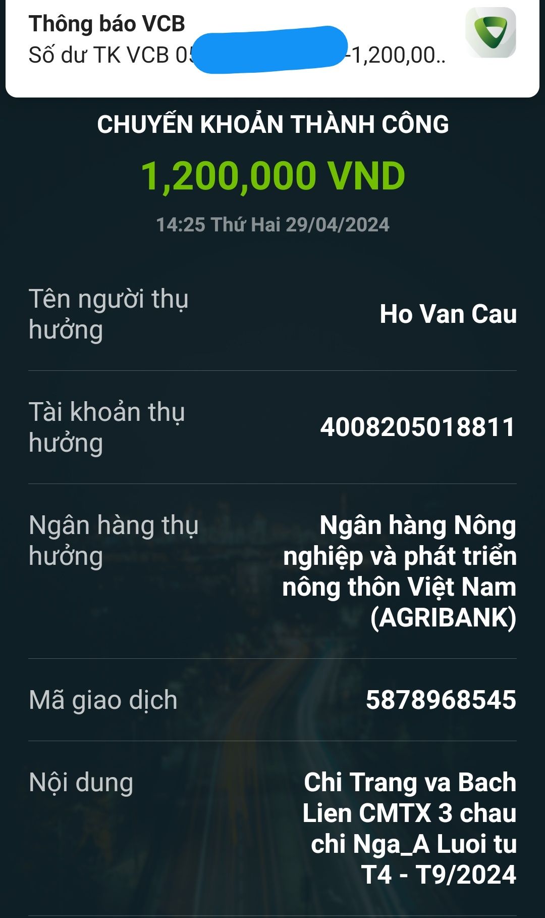 Em đã nhận được chuyển khoản 8.200.000đ và đã ghé thắp hương tối nay,29/04/2024.