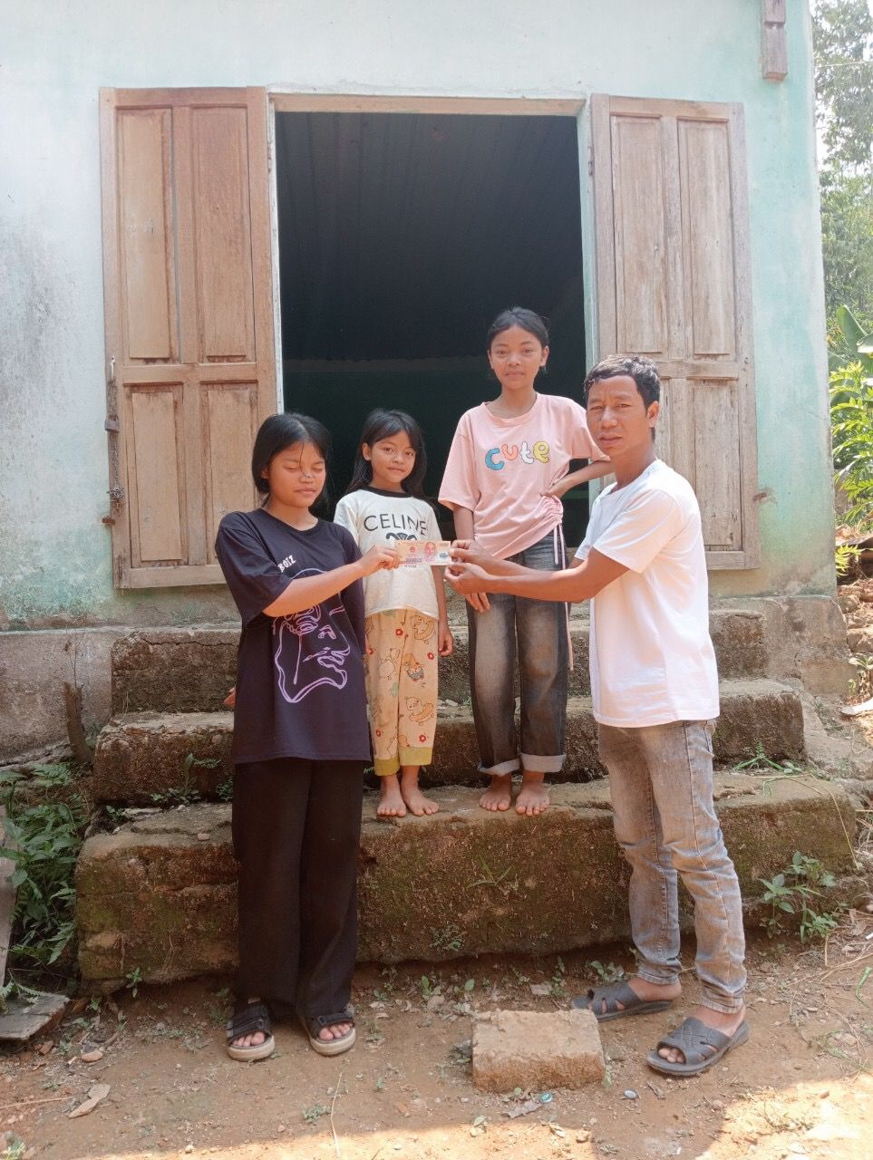 Em Pi Riu Thế đã trao xong số tiền 300.000đ của chị Whoadung là 200.000đ và trích quỹ NTCM là 100.000đ để giúp đỡ cho bà Kê Thị Ngoái và các cháu ngày hôm nay 25/5/2024.
