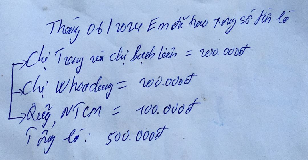 Em đã trao xong tổng số tiền là 500.000đ của các chị gồm: