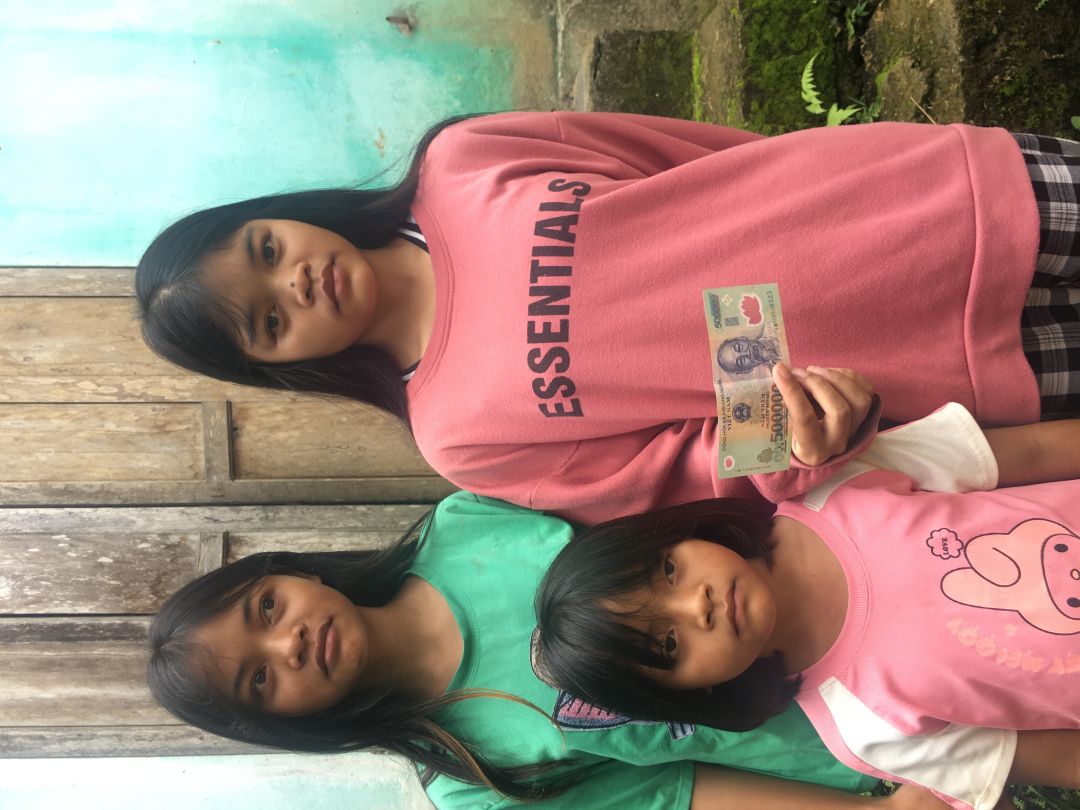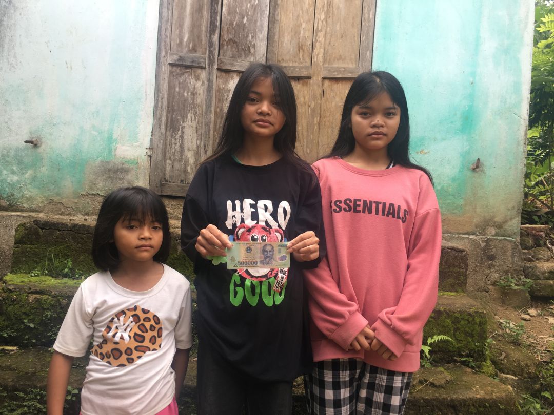 Tháng 5 em đã trao 200.000 đồng cho 3 cháu của bà Kê Thị Nga xong
