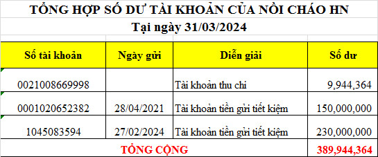 Hiện tại, nồi cháo đang tạm dừng hoạt động, do đó chị thủ quỹ đảm đang tháo vát của chúng ta đã mở thêm tài khoản tiền gửi tiết kiệm. Nhờ đó mà nồi cháo có thêm khoản thu từ lãi tiền gửi. Yêu lắm luôn ạ.