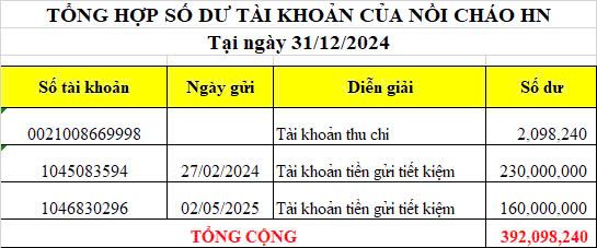Re: Nồi cháo Hà Nội - Thống kê cưu mang, Báo cáo thu chi năm 2024