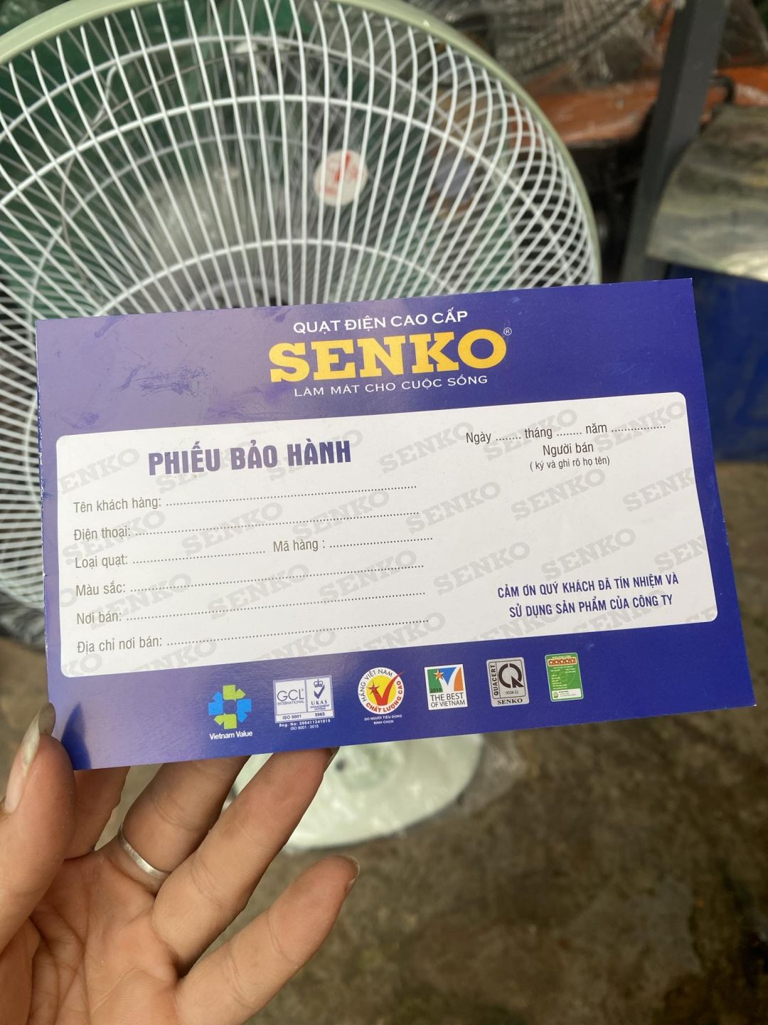 Em Wendy đã trao đổi với nhà phân phối và nắm được mẫu quạt là hãng Senko (hàng chính hãng của công ty), giá thành là 300.000đ và được bảo hành 6 tháng( sau này đại lý bán hàng sẽ ghi tên và thời gian bảo hành ở từng phiếu ạ)