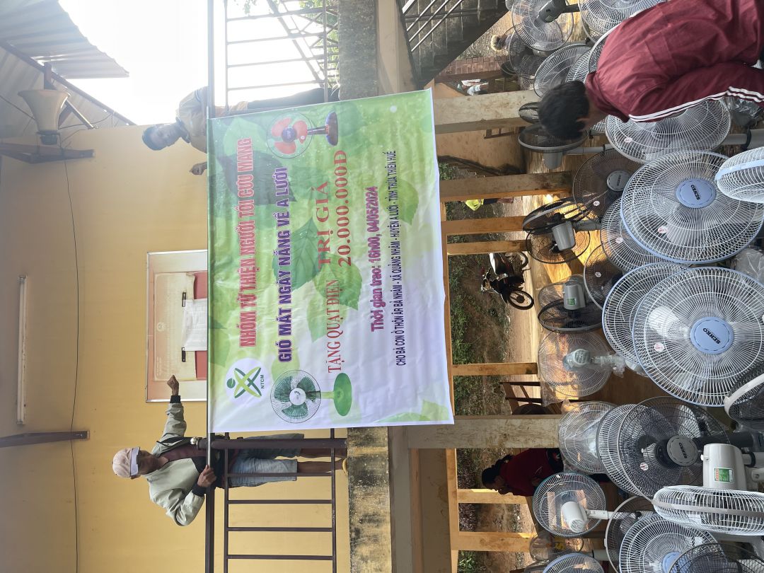 63 cái quạt điện đã được trao tới tận tay bà con thôn A Bả , Quảng Nhâm, A Lưới, Huế.