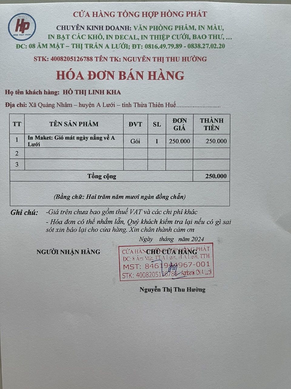 Em Wendy xin bổ sung tiền in banner là 250.000đ.
