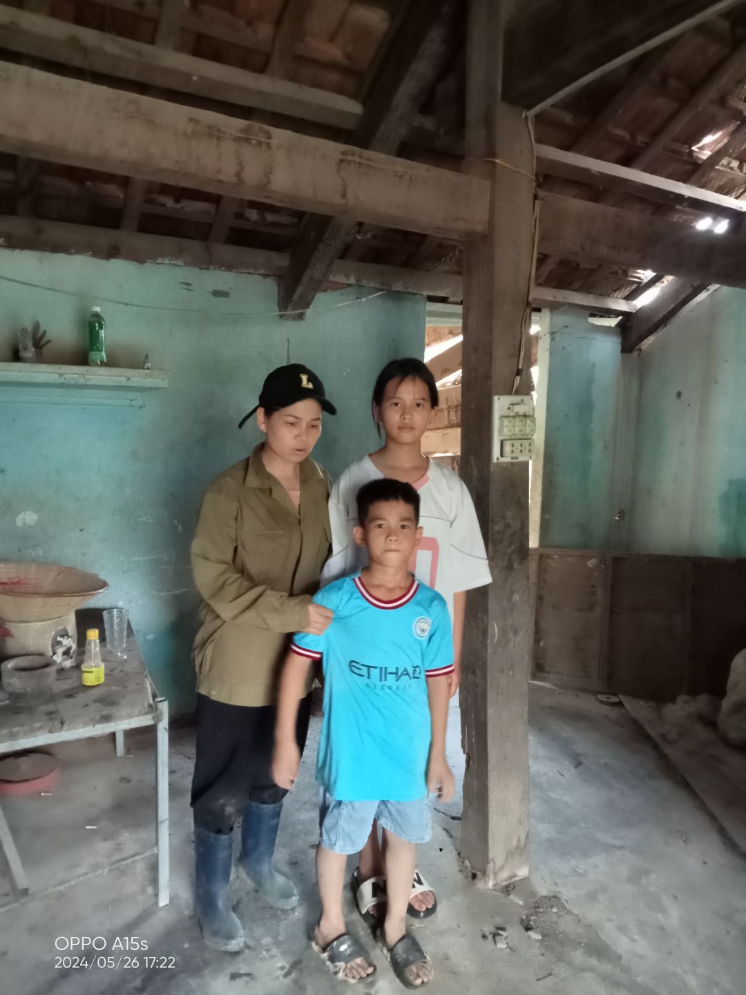 Gia đình chị thuộc diện hộ nghèo của xã, gia đình anh chị có 3 con nhỏ 2008-2011-2016, gia cảnh vô cùng khó khăn. Gia đình không có đất canh tác, không nghề nghiệp ổn định, người thu nhập chính của gia đình chị nhờ vào người chồng đi làm thuê ở Bình Dương mà có, tuy nhiên số tiền kiếm được cũng chỉ đủ trao trải cho cuộc sống eo hẹp, tiền con cái ăn học và lo chuyện thuốc thang cho con.