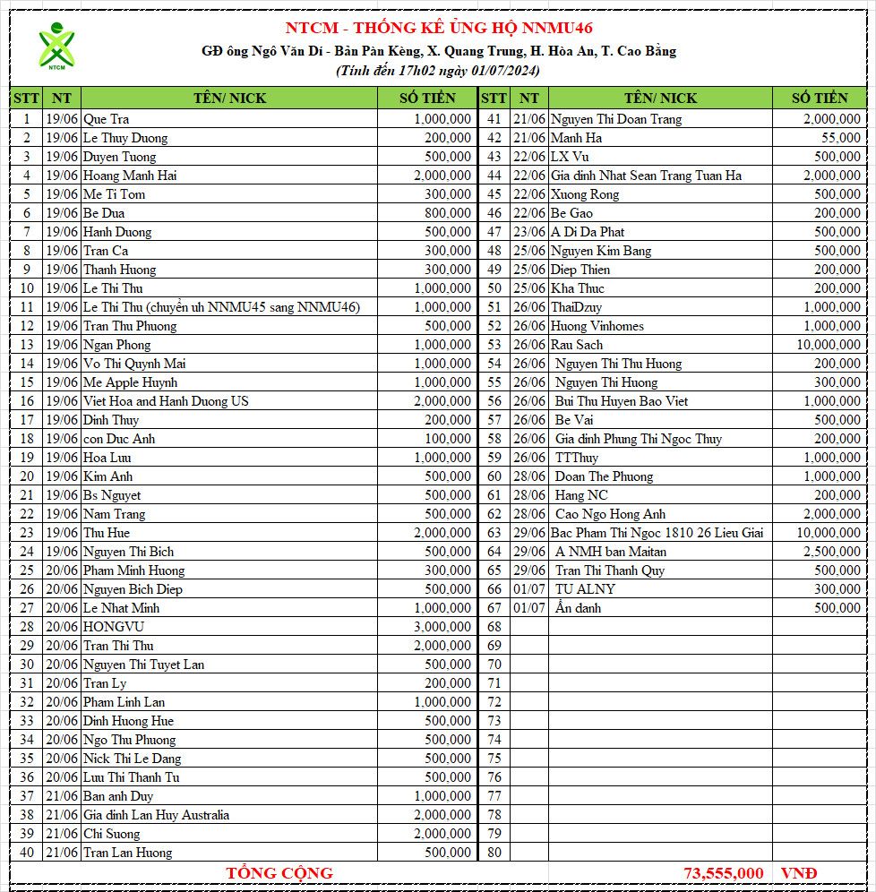 Em xin gửi Thống kê ủng hộ NNMU46.