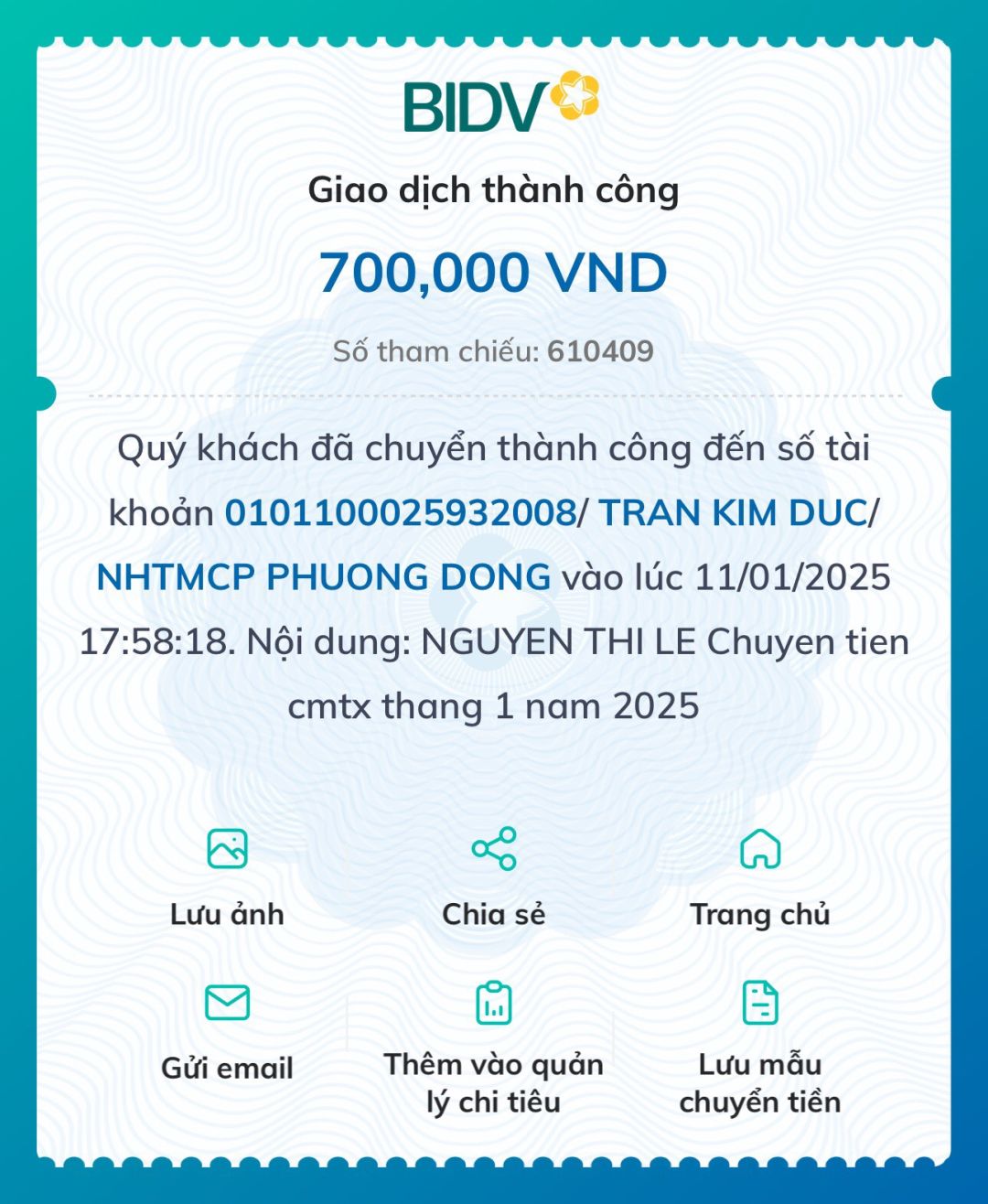 Thành viên Lệ Nguyễn nhận CMTX hoàn cảnh này mức 700k/ tháng bắt đầu từ tháng 11/24 đến hết tháng 01 năm 25 như đề xuất xác minh.