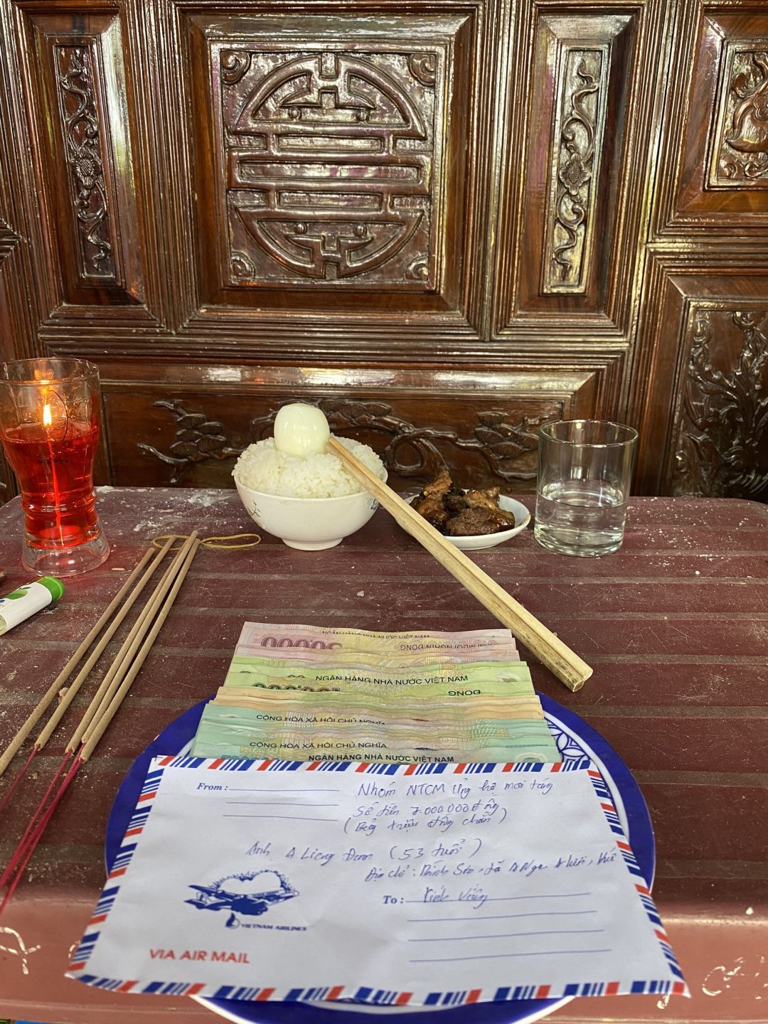 Em đã nhận được số tiền 7.000.000 đồng. Trưa hôm nay, thứ 4 ngày 24/07/2024 em đại diện nhóm NTCM ở huyện A Lưới, tỉnh TT Huế đã đến chia buồn và trao số tiền ủng hộ mai táng là 7.000.000 đồng cho chị Lê Thị Huệ vợ của anh A Lieng Đam 53 tuổi ở thôn Bình Sơn, A Ngo, A Lưới, Huế (Vừa mới mất)