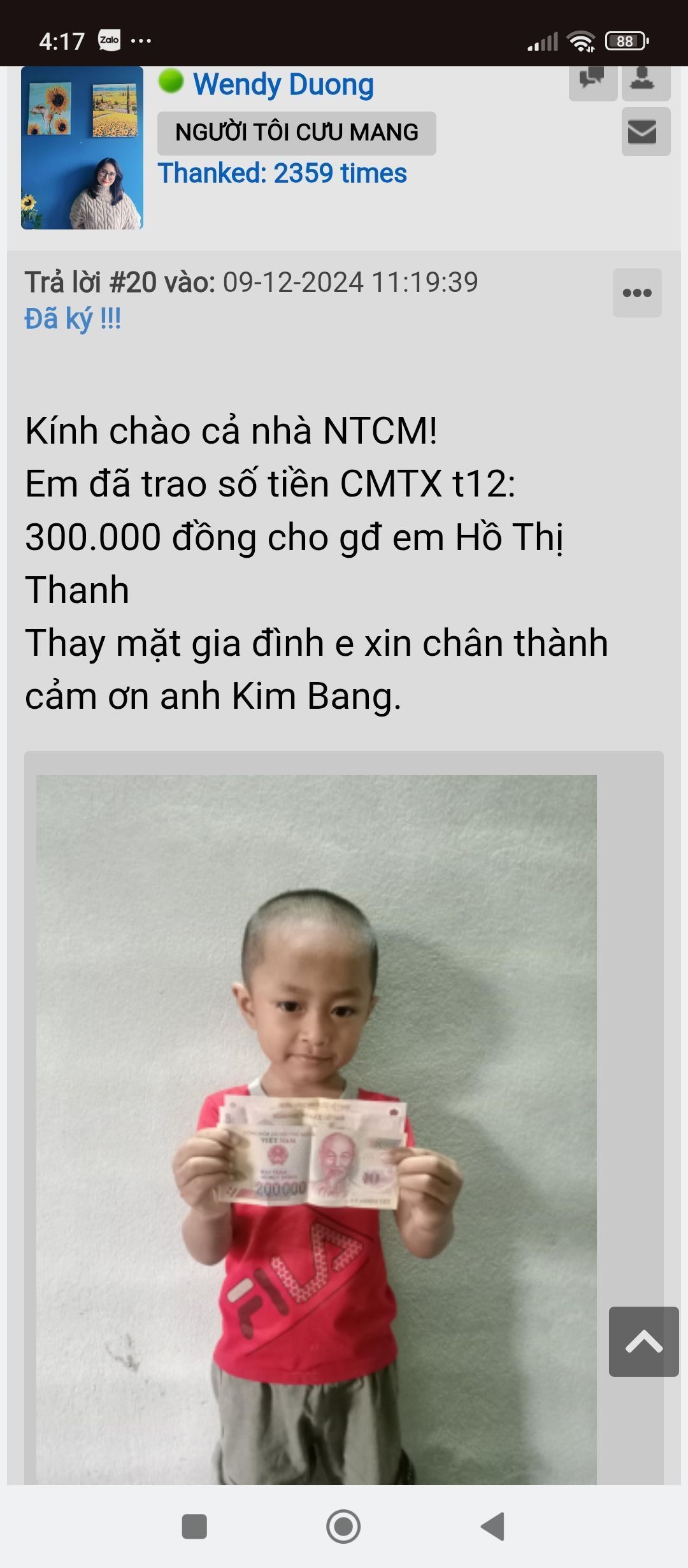 Cám ơn Wendy Dương đã cập nhật hình ảnh trao tiền CMTX đến hoàn cảnh để cả nhà cùng nắm được.