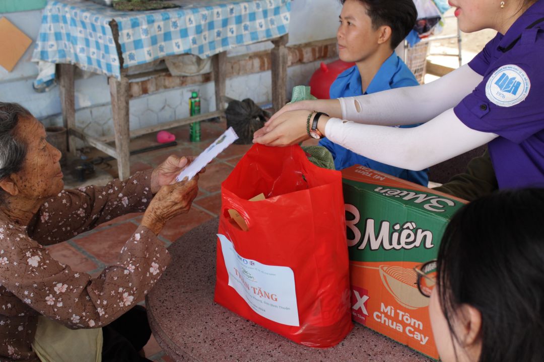 : 300.000đ tiền mặt, 20kg gạo, 1 bịch bánh pía, nhu yếu phẩm (muối, đường, nước tương, bột ngọt)