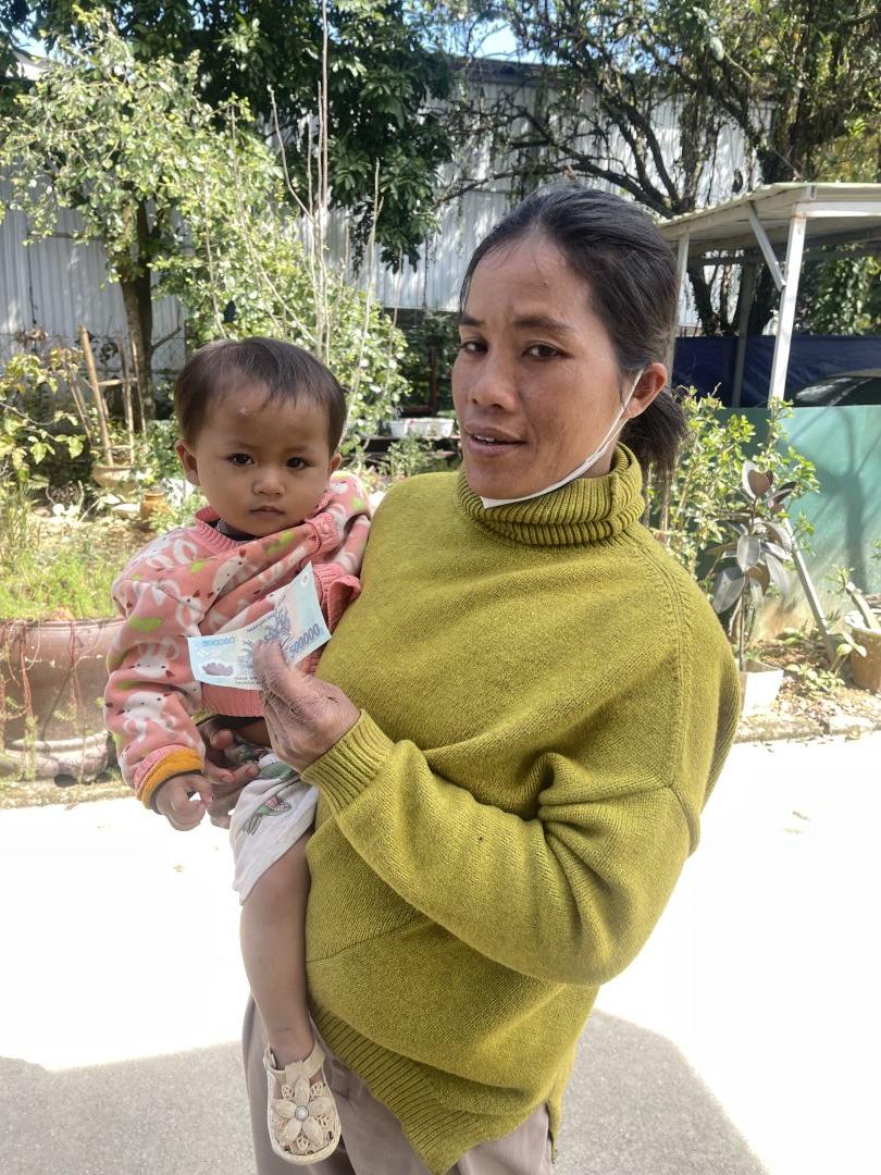 Em đã trao tiền cmtx t1 500.000 đ và 500.000 tiền mừng tuổi tới gia đình chị Áo