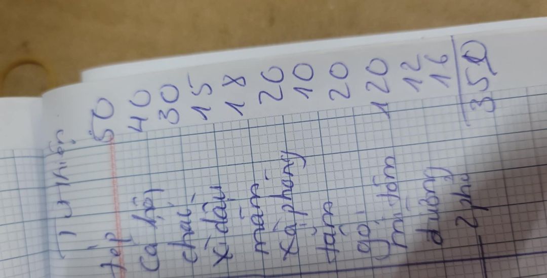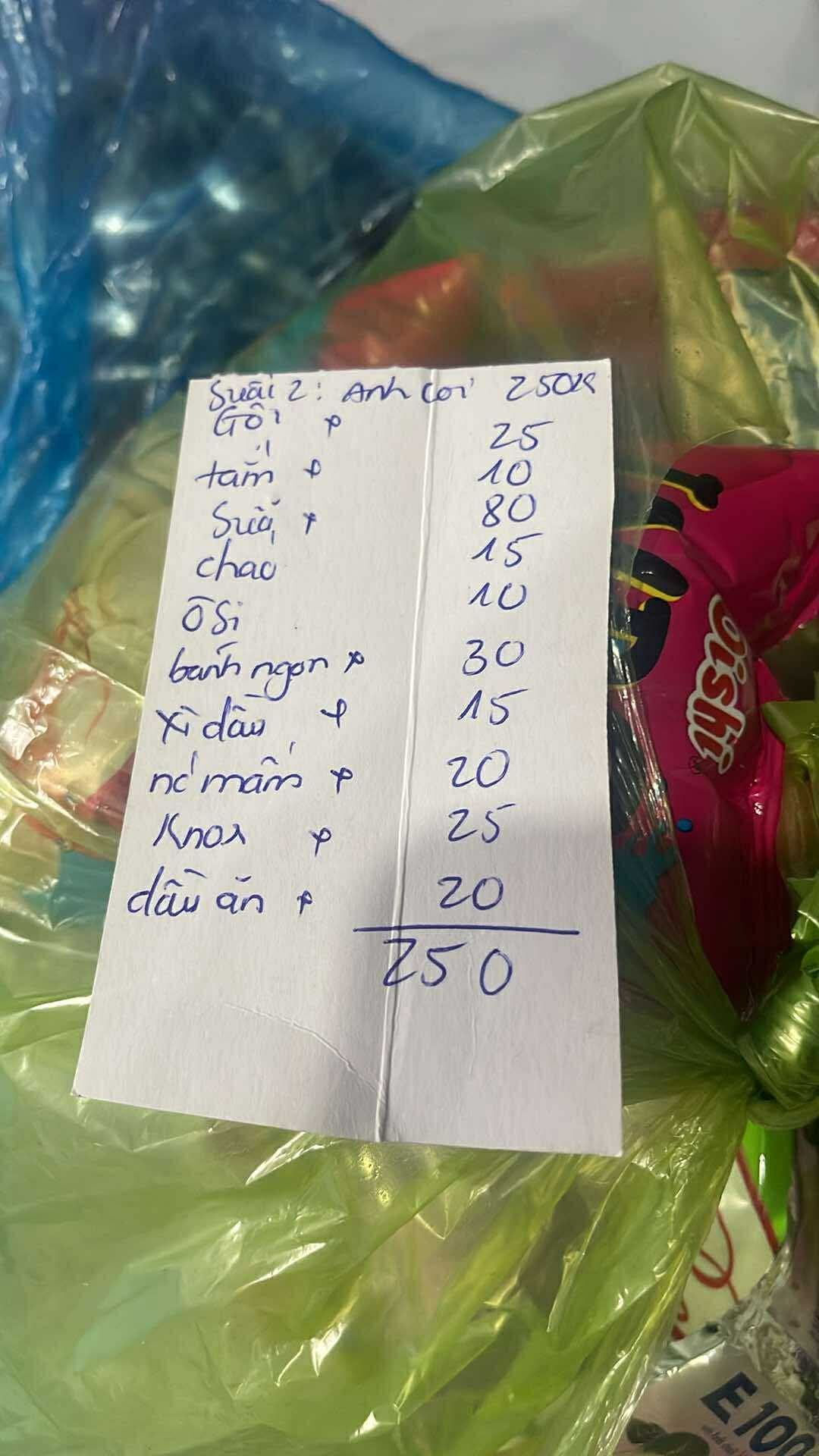 Trứng 100. 000 đ, mì khô 100.000 đ, gạo 180.000 đ