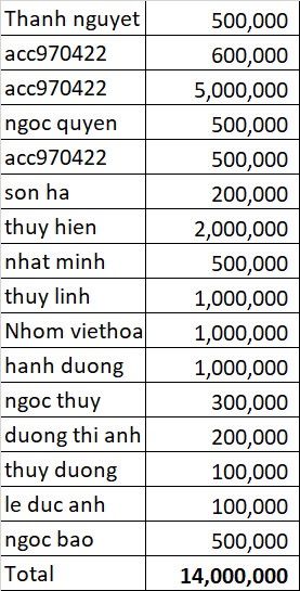 Đến sáng nay theo sao kê từ 1501 mọi người đã góp được 13.400k